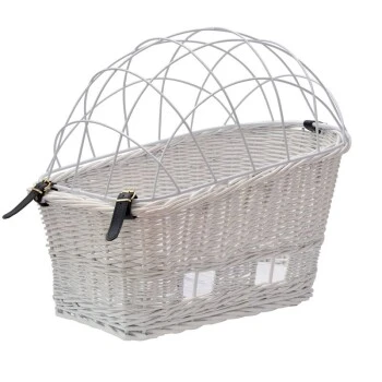 Der aus gesottener Vollweide gefertigte Fahrrad-Tier-Korb aus dem Hause Aumüller, für die Gepäckträgermontage ist der ideale und vorallem verkerhssichere Begleiter für kleine oder große Radtouren mit Ihrem Liebling. Die mitgelieferte Sicherheitskuppel verhindert das Herausspringen Ihres Hundes während der Fahrt und lässt sich durch die Lederriemen sicher am Korb fixieren. Die wasserfeste Einlagedecke sorgt zusätzlich für einen hervorragenden Sitz-, bzw. Liegekomfort Ihres Vierbeiners. Bei Verunreinigung llässt sich alles ganz einfach von Hand, mit einer milden Seifenlauge säubern.