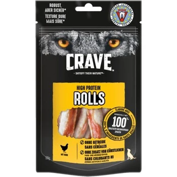 Belohne deinen Hund mit CRAVE™ Protein Rolls: Hundeleckerlis aus hochwertigem tierischem Protein und ohne künstliche Farb-, Aroma- oder Konservierungsstoffe – für einen Geschmack, den Hunde instinktiv lieben.