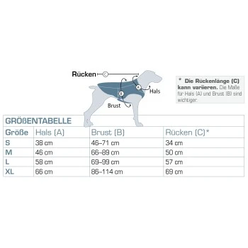 - Größe XL passt Hunden mit einem Halsumfang von 66 cm und einem Brustumfang von 86 bis 114 cm und einer Rückenlänge von 69 cm