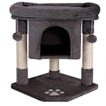 Mit diesem Katzenspielhaus aus weichem Plüsch bleiben keine Wünsche Ihrer Samtpfote offen. Die kuschelige Höhle lädt zum Ausruhen und Verstecken ein und die beiden hängenden Plüschbälle sorgen für den nötigen Spielspaß. Das einladende Liegebett ist ideal für die Ruhezeiten und das Beobachten der Umgebung. Die Stämme aus robustem Sisal unterstützen die Krallenpflege und halten Ihre Katze somit von den Möbeln fern.