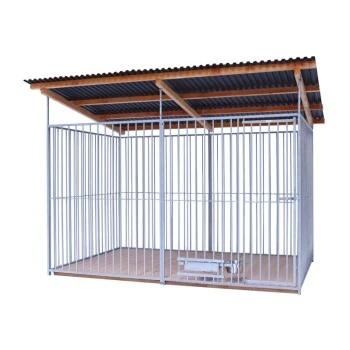 - Lieferumfang: Dach, Tür und ausschwenkbarem Futter-Trinknapf-Set aus Edelstahl (Volumen jeweils ca. 3,5 l)