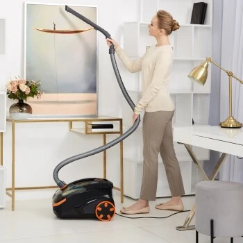 Fix trocken saugen? Am besten mit der ZYKLON-Filterbox. Beim Saugen werden Feinstaub und allergene Partikel von grobem Schmutz und Tierhaaren getrennt und der jeweiligen Kammer des cleveren Doppelkammer-Systems zugeführt.
