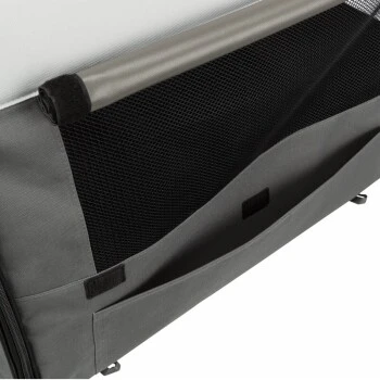Abdeckbare Netz-Einsätze zum Schutz des Tieres sorgen für eine gute Luftzirkulation. Die mit Fleece gefütterte Bodenplatte verfügt über einen Nylon-Bezug.
